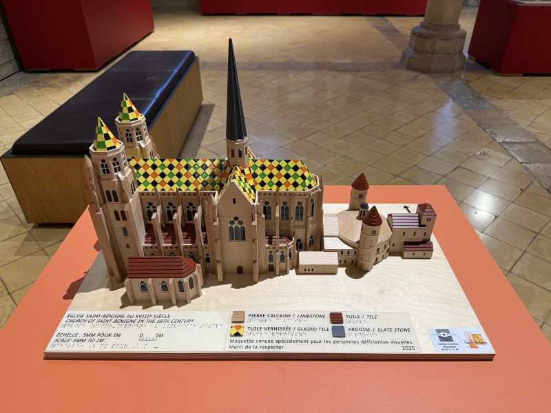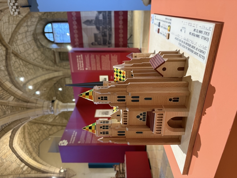 Cette maquette vient compléter le plan livré précédemment. Elle représente la cathédrale au XVIIIème siècle avec la partie gothique venue se coller contre la rotonde romane. Une attention particulière a été apportée pour représenter les tuiles vernissées à l’aide d’un toucher et de couleurs particuliers |