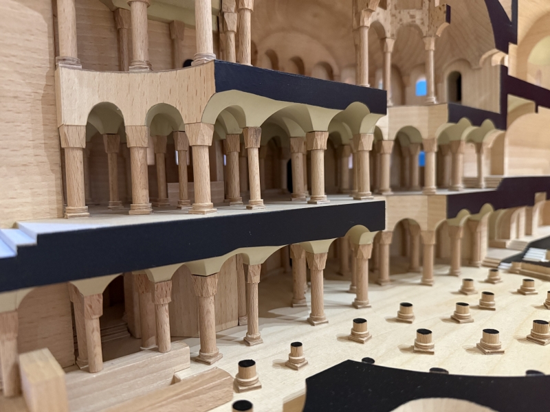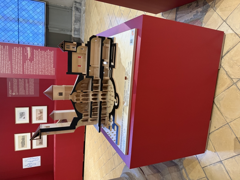 C’est la dernière maquette commandée par la DRAC. Elle représente la rotonde du XIème siècle en coupe. Seule la partie nord est représentée en élévation. La partie sud est en plan. L’intérêt ici est la mise en volume d’un édifice dont on possède peu de représentation et de le mettre sous les mains de personnes déficientes visuelles.