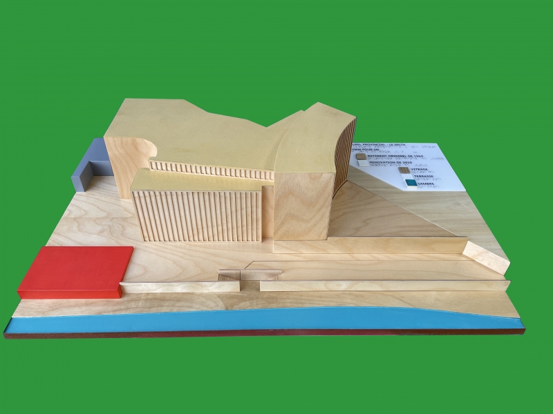 Le Delta est le nom du nouvel espace culturel de la ville de Namur en Belgique. Auparavant Maison de la culture, le bâtiment a été restauré et enrichi de nouveaux espaces. Le but de cette maquette est de montrer les bâtiments d’origines, en bois brut et ceux qui ont été rajoutés, en blanc. |